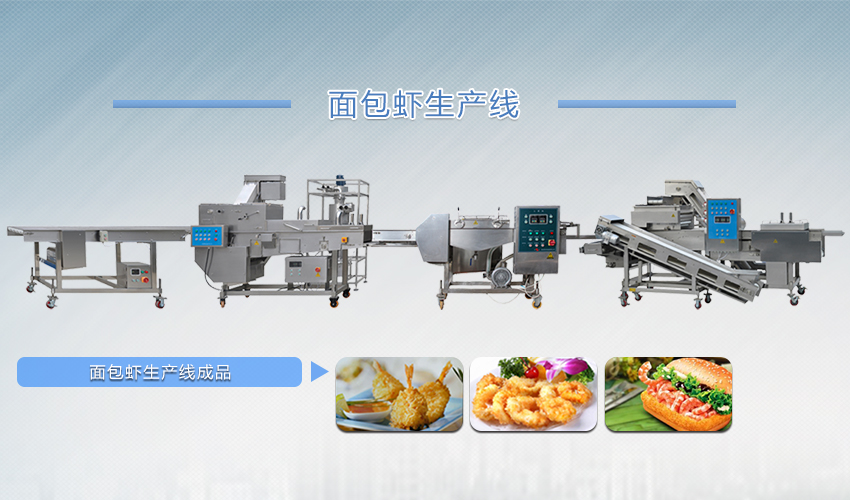 原料經(jīng)過提升機輸送機提升至滾筒內(nèi);滾筒滾動時原料與粉料充分混合,粉料被均勻地包裹在原料表面上;多余粉料經(jīng)過滾筒后端時通過滾筒篩網(wǎng)孔漏掉,而產(chǎn)品落在輸出網(wǎng)帶機上;網(wǎng)帶機設有附粉振動機構(gòu),可以將產(chǎn)品表面多余的附粉振落,最后將產(chǎn)品輸送到下一工序。可以同上漿機、上面包屑機連接,組成不同產(chǎn)品的生產(chǎn)線...